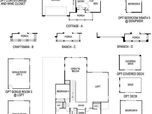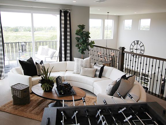 Partington is a thoughtful two-story with a spacious interior and inviting front porch. The first floor features a cozy den off of the entry, coat closet for additional storage or wine closet, powder room and laundry room. The gourmet kitchen comes with highlighted options that include an expanded walk-in pantry with cabinets and a beautiful center island. The kitchen flows seamlessly into an added nook area with the option of additional lower cabinets. As a centralized space, the living room meets the luxurious Owner's Suite with a large walk-in closet, separate soaking tub, shower, dual sink vanities and optional California Room. Upstairs is a large loft with a balcony overlooking the living room. From the loft, additional bedrooms and bathroom are located just down the hall with the option of a covered deck over the California Room.