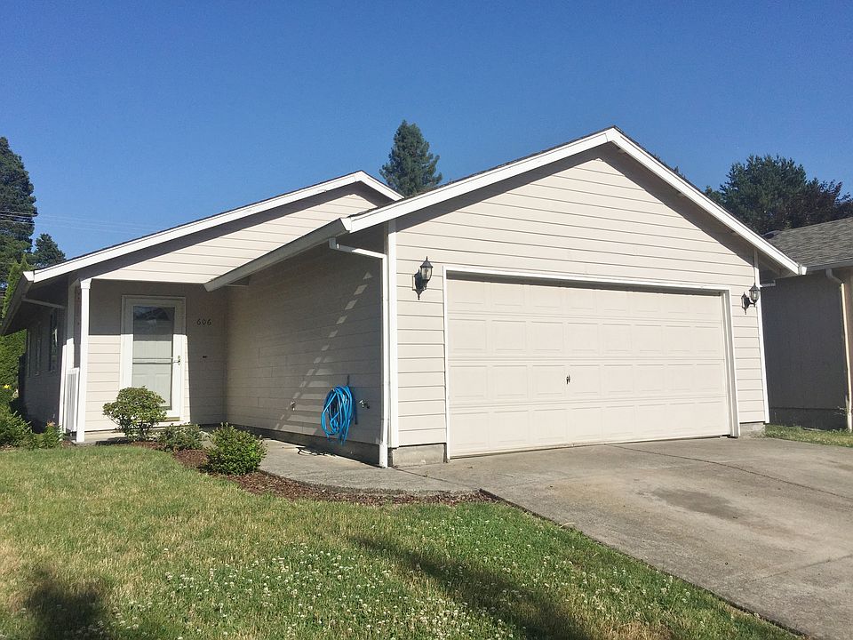 Easy Living! 1 level 3BR, 2BA, Hardwood Floors in living, Tiled Kitchen Floors, Private Master Patio Oasis! Easy maintenance yard, finished 2 car garage. Walk to Jaquith Park - close to GFU and Downtown Newberg. Won't last- Come visit us!