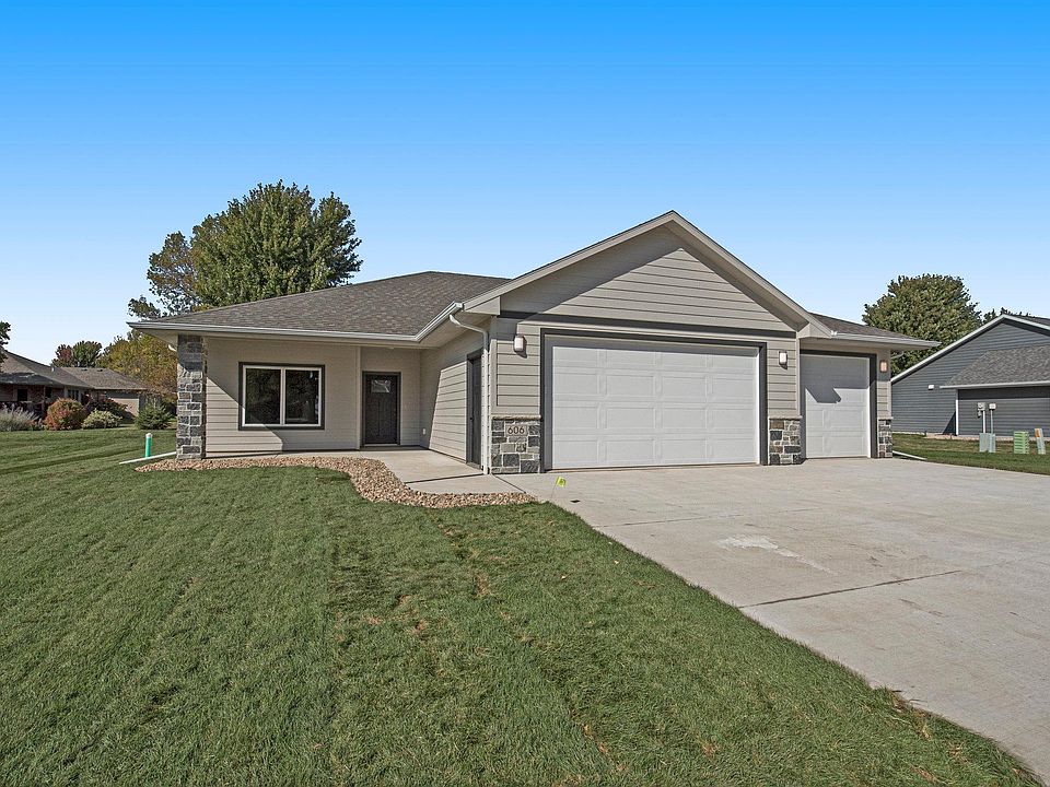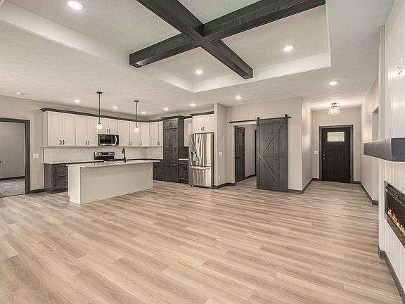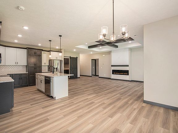 Introducing the Heritage by GlamMeier Homes! This stunning new construction slab-on-grade home offers 3 bedrooms, 2 baths, and an inviting open floor plan designed for modern living. The spacious primary suite features a walk-in closet and private ¾ bath, while two additional bedrooms provide space for family, guests, or a home office. You'll love the attention to detail throughout, from the tray ceiling with a cross-beam accent and feature fireplace wall to the rich, dark gray trim that beautifully contrasts with the soft, linen cabinetry. The kitchen is a true showstopper, featuring a center island, stainless steel appliances, quartz countertops, a tiled backsplash, and a hidden walk-in pantry. Function meets style with a sliding barn door leading to the mud/laundry area, while comfort extends outdoors with covered front and back porches, sod, and a sprinkler system already in place. The finished triple-stall garage with water hookup adds convenience and space for vehicles, hobbies, or storage. Move right in and enjoy a thoughtfully designed home that blends modern finishes with everyday functionality.