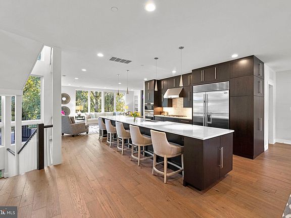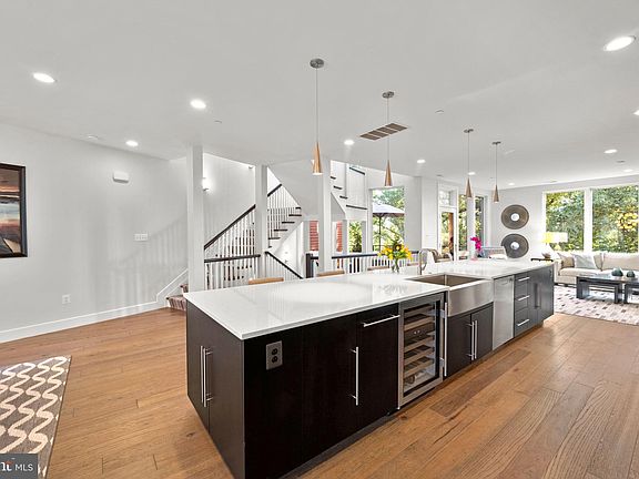Welcome to this stunning townhome located on a private yet accessible tree-lined street in an alcove of 11 custom-built townhomes just over the DC border, overlooking the Brookmont neighborhood in Bethesda. No stone has been left unturned in this one-of-a-kind, luxurious, 4-level elevator townhome with floor-ceiling windows on every level, each with unobstructed views of nature. The posh factor has been turned up with sleek, modern amenities that start when you enter through the custom floored garage or front entry, up to the main level where the open floor plan includes a generous dining space, chef's kitchen perfect for entertaining adjacent to a large family room with a private deck. On the upper level, there are two primary bedrooms with en-suite bathrooms including everything you would expect and some you may not, like heated floors in both. Continue up to the expansive roof-top deck with show-stopping views of the Potomac River & Virginia.