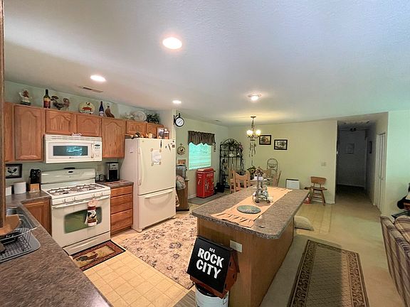 - Living/Dining Room, Open Floorplan, Breakfast Bar, Ceramic Tile Bath, Kitchen Island, Main Level Living, Pantry, Workshop, Kitchen/Dining Room, Primary w/Ensuite, Primary on Main Level, Walk-In Closet(s), Ceiling Fan(s), Soaking Tub, Large Master Bedroom