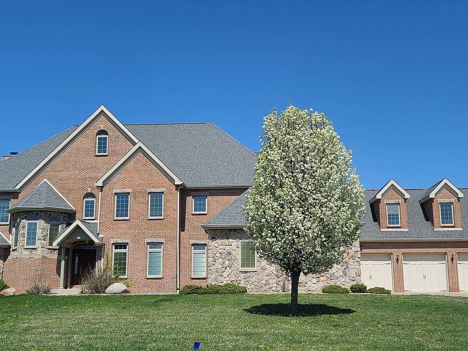 This MOVE IN ready Luxury Home has over 6000 sq ft on the main two levels with more space to be finished in basement! Solid, all brick home on an oversized lot, there is more to add as you desire. The main floor has a grand entry, then onto the Great Room and Family Room. The Eat-In-Kitchen is SUPER large with a breakfast bar, stainless Jennaire and Maytag Appliances, space for a table and an XL Walk In Pantry. The dining room is nearby. There is also an office, connected to a Full Bath. This side of the house could be turned into a bedroom suite if desired. 2nd floor has an XXL spacious Owner's Suite, complete with a bonus room, 2 Walk-in Closets, a linen closet and the Private Bath is super spacious. There is a Jetted Tub, Private Walk-in Shower and 2 Sinks. The additional 3 bedroom suites and laundry rooms are located down the hall. All have large closet spaces. The basement is plumbed for bath and kitchenette, with a partially started theater room. The yard was set up for a pool option and has a wonderful amount of space to enjoy with your desired landscaping. A 5 car garage completes this home. New carpeting and freshly painted throughout in neutral tones.