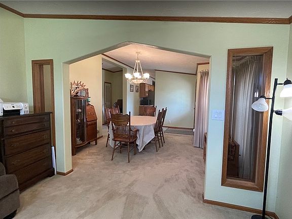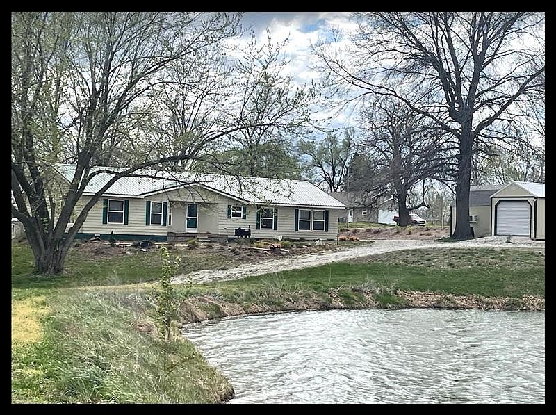 Welcome to your serene retreat! Nestled on 3.8 acres, this charming 3-bed, 2-bath modular home offers effortless living on one level. Enjoy the spacious open concept, accentuated by expansive windows framing picturesque pond views. Step outside to your own fishing dock, perfect for leisurely afternoons. Ample parking and nice gravel circle driveways are adorned with shade trees, enhancing the tranquil landscape. With three additional usable buildings on the property, versatility meets tranquility in this idyllic haven. There is a 1 car detached garage, a garden shed with loft storage, and a 3rd building with both enclosed & open spaces. The property & landscaping just need some simple polishing. Plenty of room for a garden or a dream shop for you. Welcome home.
