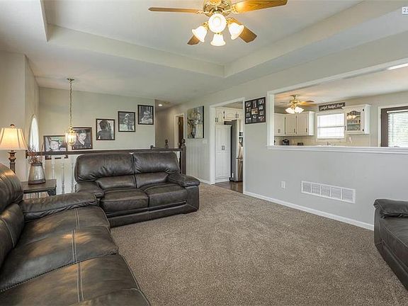 Updated 4 bedroom, 3 full bath on cul-de-sac lot in desirable Ward Park Place. NEW carpet & flooring! Awesome, new deck above expanded, walkout patio to level, fenced yard. 2 year old HVAC! Inviting entry displays modern grey tones throughout. Open concept Kitchen, Dining & Living areas; great for entertaining. Kitchen boasts white cabinets w/ center island & new flooring. Spacious master w/ walk-in closet. Large secondary bedrooms. Big garage for plenty of storage/workshop. Easy access to Raymore & Lee's Summit!