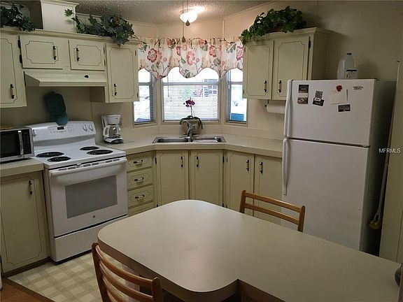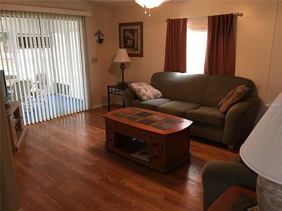 Attractive, 2 bedroom home with laminate and vinyl floors. Most furniture is included. New washer/ dryer in January, 2018. New AC and stove in 2017. Refrigerator new in 2015. Laminate floors in 2015. Vinyl screened room in front of home and covered patio in the rear. It could be enclosed for more storage. The lot has lots of parking space. Own your own land with low HOA fees. The community has 2 clubhouses and 2 pools, golf course, workout room,library, pool tables, tennis courts, shuffle board, bocci ball, and horseshoe courts.