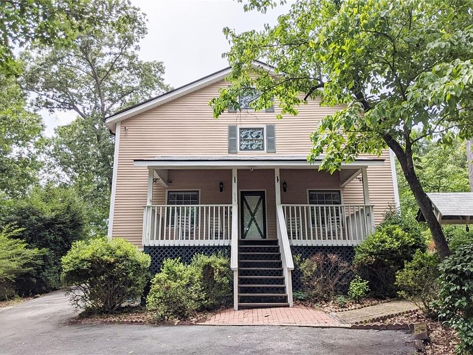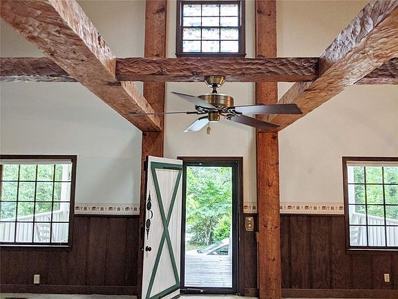 THIS CHICKASAW POINT GOLF COURSE HOME is well known in the community. "THE BARN" being the 2nd oldest and built by one of the developers sits on 3 most desirable golf course lots. Over an acre on the 6th fairway only 1 mile from gate and lake! All the wood, including the hand hued large white oaks used for the massive beams, came from the property. Wonderful curb appeal and landscaping surround the exterior of the home with multiple areas to sit and enjoy nature. From the welcoming front porch enter front door to take in the attention to detail in the expansive living and dining rooms. So open and easy flowing from room to room. The kitchen is spacious with double ovens, pantry and room for a center island to be added. Find 2 large bedrooms and Jack n Jill full bath on the main floor. The upstairs is open to living room below and has ample room for additional sitting area, exercise, or crafting. Also 2 more spacious bedrooms and full bath. For maximum views access over sized all season sun room and deck overlooking the back yard & golf course from second floor. Storage will never be a problem with 2 unfinished spaces in rear. Use one to store boat & other for an amazing workshop if desired. With some updating this home has the potential to be outstanding. The structural design and outstanding property offers much opportunity. Chickasaw Point is a gated community rich in amenities both for golf and lake lovers. Enjoy pool, tennis, clubhouse, and community lakeside area. Community storage also available for boats and RV's. Location is very convenient to Atlanta and Greenville with easy access to I-85. Clemson University is 30 minutes away.