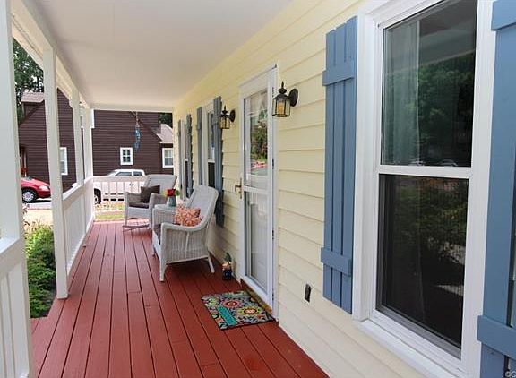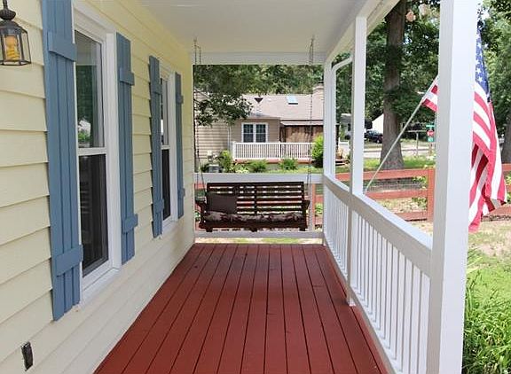 This immaculate Cape Cod style home has been lovingly maintained. The full front porch welcomes you home and has plenty of room for outdoor furniture. The living room features a vaulted ceiling, a fireplace that accentuates the height of this room, and upgraded laminate floors that flow into the kitchen. The kitchen is light and bright and boasts cabinetry with soft close drawers & doors, Corian countertops with under mount sink, tile backsplash new in 2016 and under-cabinet lighting. Two good size bedrooms, a full bath and laundry complete the first floor. Upstairs, the loft provides a second living space. The master bedroom is truly a retreat with plenty of room for a king size bed and other furniture. The walk-in closet offers great storage. The master bath is spacious and a new shower was installed in 2014. The outside offers tons of entertaining and relaxing space. The multi-level deck offers plenty of seating area and room for a grille. There is also a paver patio and fire pit. A 12' x 8' detached storage shed offers plenty of space for garden tools. This home is conveniently located near shopping, restaurants, entertainment and major thoroughfares.
