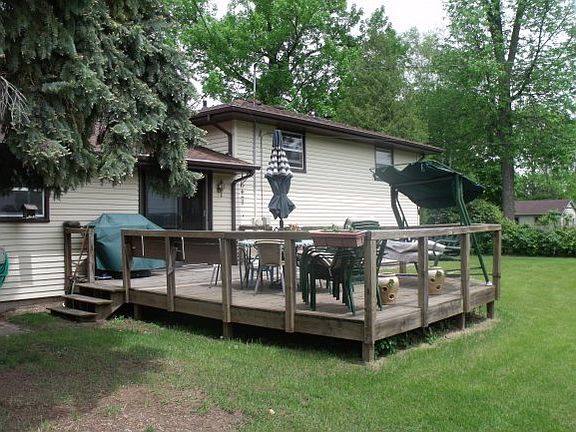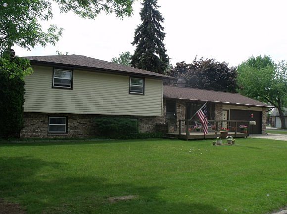 Quiet setting tri-level 3 bd 1 full ba updated well maintained home. Newer furnace, H2O heater, carpet & kit countertops. Appl incl. LL has utility rm which incl stacked washer & dryer. 3 nice size bdrms on upper lvl. Wood burning FP in lower level. Nice sunshine thru out the home. Big 2 lot yard with 21x14 wood deck, utility shed incl 12x8. Near 9 hole golf course. Steel siding/lifetime warranty