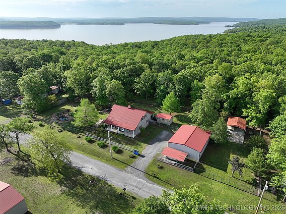 If you're looking for a home that feels like a lake getaway every day, look no further. Nestled in a desirable lakeside neighborhood with community lake access and a convenient boat ramp, this beautiful home offers the perfect blend of rustic charm and modern convenience. With a metal exterior and roof, this property promises low maintenance and lasting durability---perfect for easy lake living. Enjoy relaxing mornings and peaceful evenings on the covered porches at both the front and back of the home. Step inside to a spacious open-concept living area that includes a large living, dining and kitchen. The kitchen has a large serving bar and unique built-in tractor seat barstools that add character and fun. A large walk-in pantry provides ample storage to keep everything organized. Gorgeous board and batten walls and ceilings, accented with contrasting light and dark wood tones, create a warm, lake-inspired atmosphere throughout. The main floor primary bedroom includes two closets and is conveniently located near a large bathroom with timeless, old-world character. Upstairs, two additional bedrooms feature vaulted ceilings and charming wooden shutters that open to overlook the downstairs. A second full bath and laundry room are accessible from the back patio---perfect for cleaning up after a day on the lake. Relax in the hot tub under the covered patio, enjoy the tranquil koi pond with a gentle waterfall, or cozy up by the outdoor fireplace. The six foot chain-link fenced yard backs up to a wooded area where deer frequently visit, adding to the property's natural appeal. A storm cellar provides peace of mind, while the 3-car garage and 3-stall carports offer ample space for vehicles, boats and all your lake toys. Surrounded by mature landscaping and vibrant perennials that bloom year after year, this property truly embodies lake living.