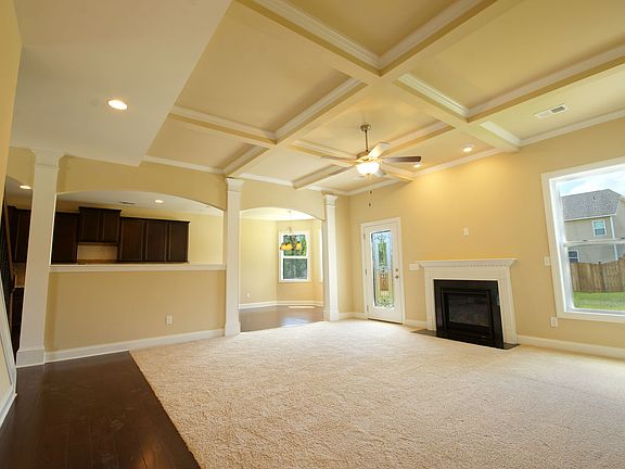Ballentine H showcases brick and stone accent front. Desired elements 9'ML ceilings, vaults-n-treys, moldings & arch-n-column accents. Trad Formals Dining accented w/Bay. Kitchen w/42'raised panel linen cabinetry, dbl pantry cab, tile backsplash, brkfast area-n-bar w/view to family rm feat...coffered ceiling & fireplace. Guest bedrm & laundry located on entry level. Granite(3CM), tile baths & 5" hardwood flooring. Baluster staircase leads to open Playrm & split plan design for secondary bedrms. Dbl entry to Owners Suite-n-private bath w/tile shower & expansive walk-in. Efficient building equates to energy saving.