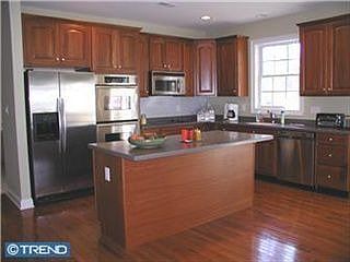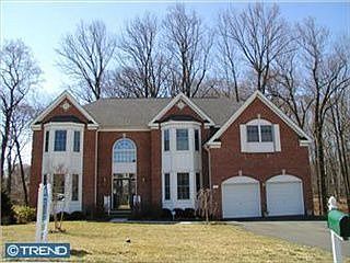 This 9 year old built K. Hovnanian community located in Lower Makefield provides a wonderful setting and perfect location. This home is the largest model in the development and offers 4/5 bedrooms. The grand entry has hardwood flooring turned stair case and two coat closets. The back set of stairs leads you to the large eat-in kitchen which has a Kitchen Aid dishwasher microwave and refrigerator as well as beautiful wood cabinets and plenty of working counter space overlooking the sunroom. Laundry room and garage access are also adjacent to the kitchen. Plenty of natural sunlight floods the great room through the large two-story windows while the gas fireplace provides warmth and comfort. The dining room has plenty of space for a large dining set for those large get-togethers. Upstairs the master bedroom has custom French doors separating a sitting area which could be used as an office. The master bathroom includes upgraded tiling and a jetted Jacuzzi tub. Three additional bedrooms complete the second level. This spacious home also features a premier crown molding package and a finished walk-out basement. All of this on a premium lot backing to woods in the Pennsbury School District! compare with preconstruction prices in Lower Makefield!