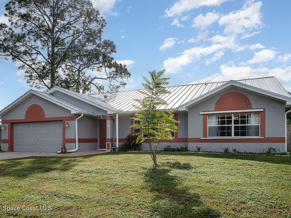 If you love entertaining, this home is ideal for you. The expansive living areas overlooking the vast covered rear porch are perfect for gatherings with friends and family. The inviting, beautifully tiled, screened inground pool will make you want to spend all your leisure time outdoors! The kitchen, which was updated by the previous owner, features granite countertops and a bar that opens to the family room and breakfast nook. More space is available in the formal living room and dining room. The large primary suite, accessible through double doors, includes walk-in closets and an en suite bathroom with double sinks, a shower, a separate tub, and a water closet with pool access. Additional features include a new metal roof installed in 2023, an HVAC system replaced in 2020, connected city water and sewer, and storm shutters. Freshly painted exterior and ready for new family! Call today!
