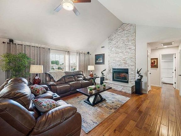 Beautiful Custom Home!! Open floor plan with many upgrades. Hardwood floors, Granite, SS Appliances, Big living area with gas fireplace. Outdoor living area with electric Fireplace and Tv. Big Deck overlooks Large fenced back yard with firepit and Nice shed. Backs up to the YMCA. Move in Ready and close to Medical and Shopping.