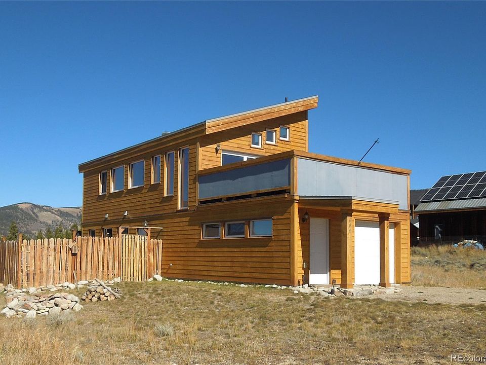 Elevate your lifestyle in this 2-bedroom, 2.5-bath, 1-garage home on Leadville’s Upper East Side. Sun-drenched interiors showcase sweeping 360° mountain vistas from the open-concept upstairs, upper level private deck, and downstairs living areas. Ideally situated just a short distance from downtown and a block from the paved Mineral Belt trail and miles of forest trails, this energy-efficient, low-maintenance residence seamlessly combines mountain charm with a modern home. The upstairs features high vaulted ceilings along with a versatile loft space that can be used as an office or quiet retreat. The passive solar heat from the triple-paned windows and the on-demand water heater significantly reduce utility costs. The fully fenced backyard, complete with a storage shed and additional open space in the adjoining lot, provides a private sanctuary for outdoor enjoyment. This home offers a rare blend of practicality and unparalleled mountain living!