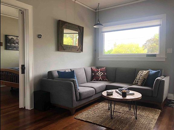 Beautiful 1922 bungalow in historic downtown Newberg with large lanscaped yard, huge patio and front porch, fruit trees, and raised garden beds with drip system. Walking distance to many restaurants, tasting rooms and coffee shops. This newly remodeled home has 2 bedrooms and 1 bathroom. The main floor has 1 bedroom and 1 bathroom with a clawfoot tub. The spacious kitchen includes stainless steel appliances, gas stove, dishwasher and granite countertops. The downstairs is accessed via the enclosed porch off the kitchen. It has one bedroom or office, a large bonus room, and washer and dryer. The downstairs is currently being remodeled with new walls/paint/windows/flooring/HVAC and will be ready for move in! Photos of lower level will be provided once finished. *Photos from previous tenants. Rental is NOT furnished
