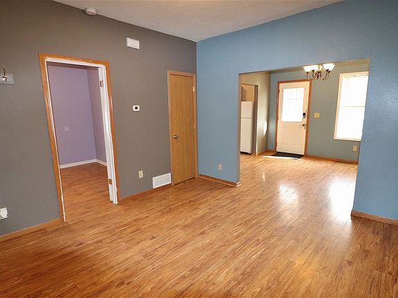GREAT PRICE AND CUTE AS A BUG'S EAR! This cozy home offers cost effective living and is situated near the heart of the city between Roosevelt Park and Downtown Main Street. Take a short stroll to the park for a picnic, swimming, or visit the wildlife at the Zoo. Ebeneezer's Eatery & Irish Pub and the charm of downtown boutiques, shops, and restaurants are just a short walk away. This compact home is efficiently designed with spacious living areas as well as a functional kitchen and adequate bedrooms. The bathroom includes two access doors from both the foyer and the main floor bedroom giving it dual functionality. The kitchen is equipped with an electric glass top range, fridge, microwave, nice wood cabinets with 8 feet of countertop workspace, and undercabinet lighting. The dining room can accommodate a full dining set with hutch and features a door to a covered back porch that would be the perfect spot for your grill. Climb the ladder steps to the upper level where you'll find 2 comfy bedroom retreats and a walk-in closet. The clean unfinished basement offers lots of room for storage and has an outside access door to the back yard. The basement also includes laundry hookups. Mechanically the home is in excellent shape with a newer high efficiency furnace, 40 gal gas water-heater that was installed 6-30-17, updated wiring, and a large capacity 200 amp breaker box. The lot is small, easy to care for, and is situated next to a natural pond that is accessible from the back yard.