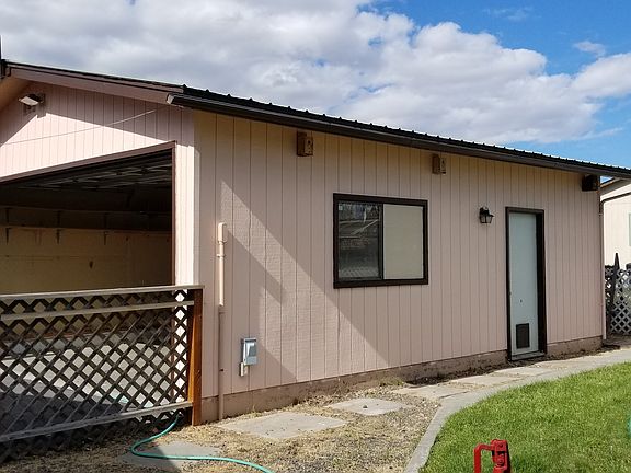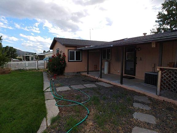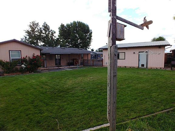 This is a great manufactured home with vaulted ceilings, skylights, ceiling fans, covered deck, pellet stove to keep you warm and cozy. Two bedrooms plus a third room for office or another bedroom. Master suite has large garden tub, shower and big walk in closet too. Heat pump, gas range, washer & dryer, refrigerator. Two car detached garage with a carport for plenty of storage. Nice size fenced backyard, raised garden beds. Quite established neighborhood with mountain views.