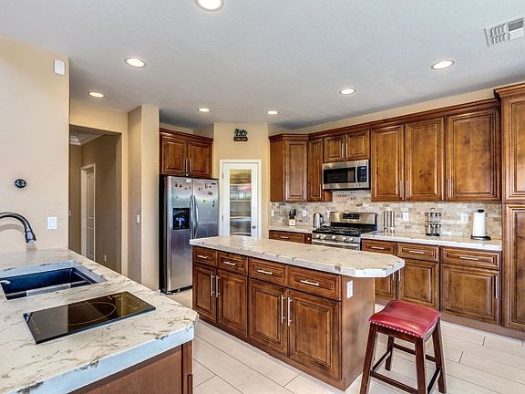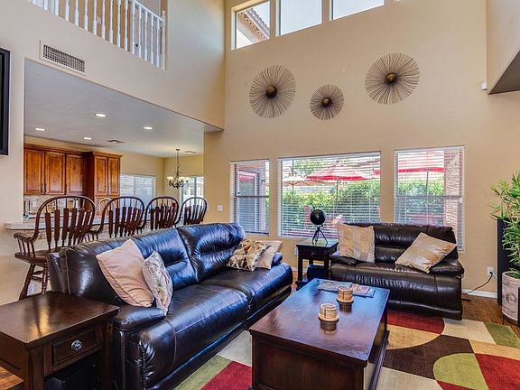 BEAUTIFULLY UPDATED HOME. This 4 bedroom 2.5 bath home will impress. You will be immediately drawn to the 20+ ft ceilings and resort style backyard. Chef's kitchen has custom concrete counters, 5 burner gas stove, built-in induction cooktop, walk-in pantry, all stainless appliances to include a built-in wine fridge. All new custom kitchen cabinets and new hardware. This kitchen is perfect for entertaining. Relax out on the patio with custom made barrel tables and chairs. Upstairs you will find the Master, loft and three guest rooms. The master suite is split with a large en suite and spacious closet. Upstairs hall bath boasts custom cabinetry with a unique leather finished marble touch finish. So many upgrades to name, please inquire for a list of additional upgrades. A must see home!