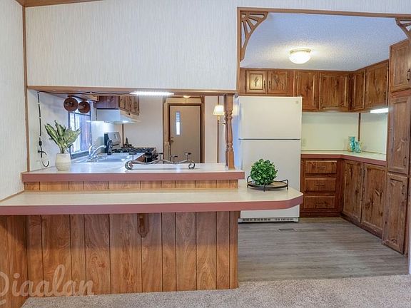BACK ON THE MARKET DUE TO BUYER’S FINANCING. Must see this well kept 3 bedroom, 2 full bathroom manufactured home. With a 2 car attached garage this 1,232 sq ft home also have newer carpet 2022 in living room and dining room and a new kitchen floor. Master bedroom has a large walk-in closet and private bathroom. Appliances included are refrigerator, stove, washer (4yrs), dryer (less than 2 yrs). Monthly lot rent $738 plus water, garbage and sewer (added). Greenview Estates Park Approval Required. Property is being sold AS-IS! Fake plants are not included. Pictured is an apple tree in the front yard, it produces white blossoms and apples you can eat. The tree in the back blossoms pink and the bushes next to it are lilac bushes. Established strawberry garden along the house by the side garage door.
