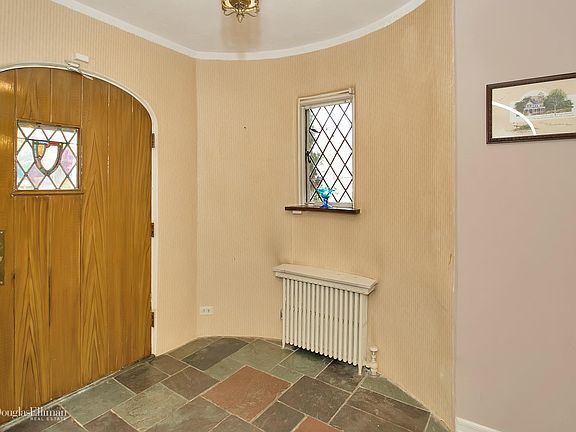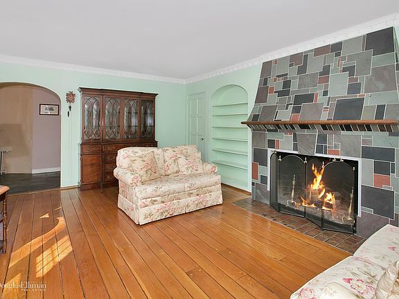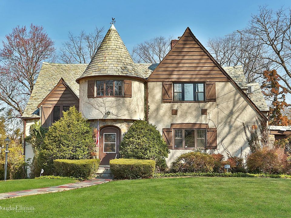 On the market for the first time since 1953 this uniquely designed Tudor will bring a smile as you walk through the stone pillars to its turreted entry. Thick walls with period decorative plaster work and refinished hardwood floors welcome you to abundantly bright, sun-filled rooms. The home features elements such as picture frame moldings, over-sized bedrooms with tandem sitting rooms/play rooms (one has a domed celestial ceiling!) and an enormous en-suite master bedroom with two deep closets, built-ins and french doors out to a Juliet balcony. A mezzanine level bedroom provides flexibility and the basement has a vintage preserve/cold storage room with a period door with a speakeasy window. The soaring garage height allows for future loft storage and the enormous basement invites endless possibility. The large level yard, and a short stroll to the Siwanoy path plus new boiler from 2006 make this your castle to keep!