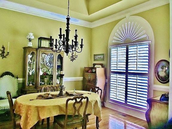 Generously sized, this exceptional brick home offers quality, grace, and charm you will fully appreciate! From the wonderful Front Porch, the leaded glass front door welcomes you into a dramatic, high-ceiling Foyer with hardwood floors. Open to the Foyer is the graciously-sized Dinning Room featuring a lovely Arched Window with custom wooden shutters. The Double Doors from the Foyer takes into what is now used as an Office, but with a nearby bathroom, this could be the 5th Bedroom ! Master Bedroom Suite is on the Main Floor and is well designed, luxurious, comfortable, and offers wonderful views of the beautifully manicured back lawn. The Master Bath offers you maximum relaxation offering a large step-in shower and a jetted tub! There are double sinks and dressing areas and lots of light. The ample closet and linen storage, beautiful molding trims, large windows with custom wooden shutters, leave nothing to be desired here. The adjoining hallway takes you to the Laundry Room and the Extra-Large, 2-Care Garage. Enter the Stunning Great Room and you will be thrilled with the high vaulted ceilings bringing in lots of light, lavish moldings, charming fireplace, and French doors and windows which bring the back lawn into view. The Breakfast Room also provides you with lovely lawn views, and a high tray ceiling to enjoy. You will truly appreciate the convenience of the Kitchen, featuring a tray ceiling, lavish moldings, arched windows with lovely custom wooden shutters Eating Bar, high-end cabinetry, pantry, and appliances. Back Deck adjoins this area, handy for grilling and enjoying the lawn views which include a shaded seating area with a firepit outside. A stunningly beautiful staircase takes you upstairs to 3 bedrooms and a full bath plus tons of storage. One of the bedrooms is an Extra-Large Suite which offers a Giant Closet, Room for a Sofa AND a kitchenette counter suitable for a micro-wave &/or Coffee Pot. What a Treat ! There is lots of storage upstairs off the other 2 bedrooms as well. This outstanding home is one you do not want to miss! Call today to set up your private viewing !