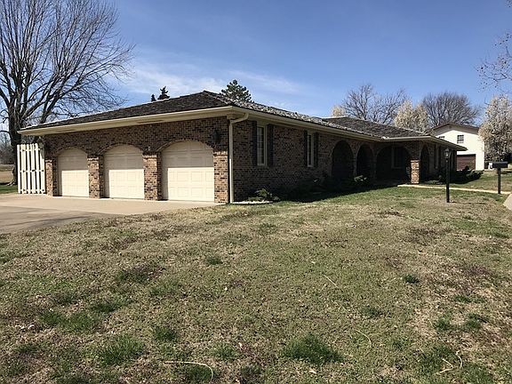 Elegrant brick ranch style home with 3 car garage on golf course. Beautiful home features vaulted ceiling, skylights, wood beams, and stone fireplace with gas logs in great room. Kitchen features double ovens, ceramic cooktop, wet bar and island. Office with built-ins, utility room and 1/2 bath off of kitchen. New laminate flooring and carpet throughout. Large sun room overlooks the golf course. Bedrooms feature large closets. Jacuzzi tub in master and walk-in tub in 2nd bathroom.
