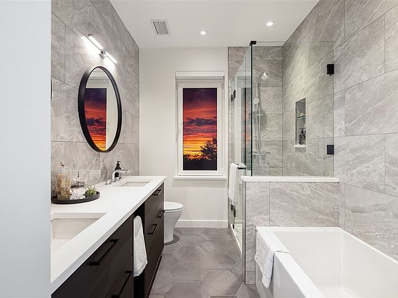 Developed by Eighth Avenue Development Group, this 3 bedroom Passive House townhome is brought to you by Skagen in West Coquitlam, walking distance to the Sky Train and the vibrant Burquitlam area. Scandinavian-inspired design offers flexible spaces that evolve with your family, full-sized laundry room, dedicated lower level flex space; can be transformed into a gym, extra playroom, office or party room. With direct underground parking access from the lower level. Reduce your carbon footprint, while maintaining 24/7 fresh air & save up to 80% in energy costs with Passive House construction. Located off Foster Avenue, this home offers an entire floor to the master bedroom with a balcony and spacious walk-in closet. Roughed in for solar panels, a/c and EV charging.