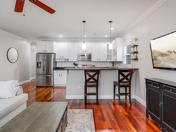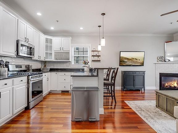 Beautiful 2 bedroom PLUS large home office/3rd bedroom and 2 NEWLY renovated full bathrooms in highly sought after Neponset. Open floor plan consisting of generously sized living room and lower level over-sized GREAT ROOM make this home perfect for entertaining. New stainless steel appliances, subway tile backsplash, granite counter tops, hardwood floors, central A/C, 2 deeded parking spots and gas fireplace. This condo has it all!