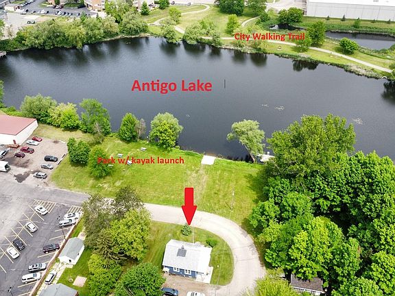 Very well maintained and updated home next to Antigo Lake and city park with direct access to the new boat and kayak launch and direct access to the popular walking trail. Home has newer vinyl windows and siding and roof is approx 5 years old. Interior has updates to kitchen including new quartz counter tops, brand new mini split AC unit, and updates to flooring and bath. Main floor has kitchen, living room, rec room, full bath and bedroom. Upper level has a bedroom and bonus room. Hard to beat this centrally located home near downtown, shopping and parks and recreation opportunities. COME SEE!!