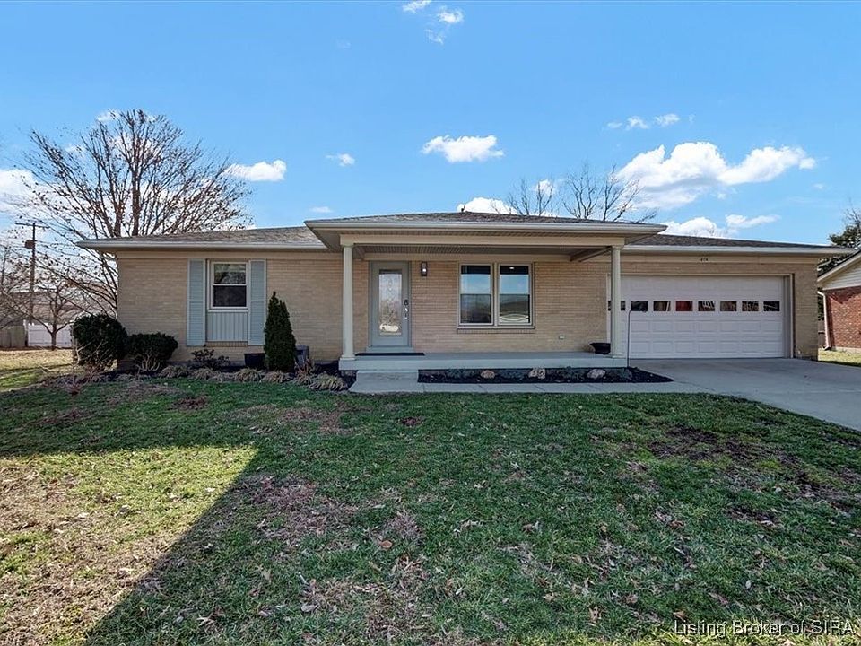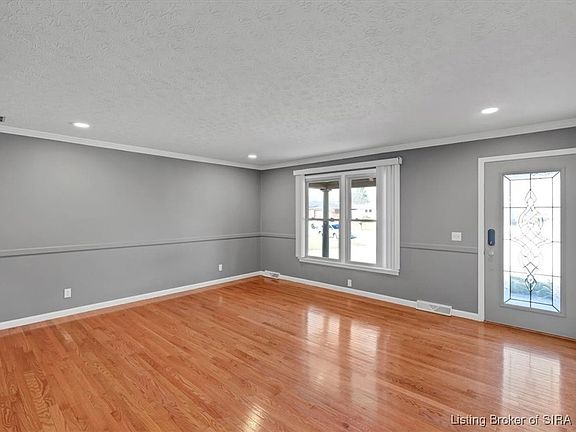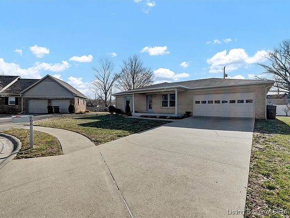 Welcome to this beautifully updated, all-brick ranch home located on a peaceful cul-de-sac in Clarksville. This two owner charming residence boasts an abundance of modern features and timeless appeal. As you step inside, you'll immediately notice the gorgeous wood flooring that flows seamlessly throughout the home, creating a warm and inviting atmosphere. The chef's kitchen is a true highlight, offering granite countertops, a spacious island, and an abundance of cabinetry, perfect for all your cooking and storage needs. Plus, it comes complete with all appliances to make meal prep a breeze. The home features two generously sized bedrooms and one and a half bathrooms, offering comfort and privacy for you and your guests. The updated HVAC system ensures year-round comfort, and the tankless water heater provides endless hot water on demand. Enjoy the natural light in the enclosed patio with tons of windows, or relax on the newer deck in the private backyard. The covered front porch is a perfect spot to unwind and enjoy your morning coffee. Additional features include replacement Pella windows, recessed lighting, a spacious two-car attached garage, and a location that provides easy access to all Clarksville has to offer. Don't miss out on this perfect blend of modern amenities and classic charm! Sq ft & rm sz approx.