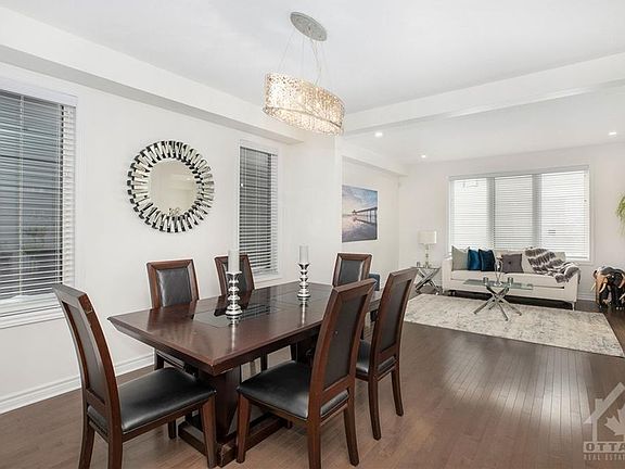 Welcome to this spectacular & spacious home located in a sought-after community in Barrhaven with tons of luxurious upgrades. Welcoming high ceiling entrance leads to open concept bright living & formal dining areas with large windows for plenty of sunlight. Spacious sparkling chef kitchen with an 8' long quartz island is a must see. The grand family room with 13' high ceiling, luxurious chandelier, gas fireplace, & a balcony is located between the 1st & 2nd levels. 2nd level overlooking the grand family room boasts 4 spacious bedrooms, master-ensuite & a 2nd bath. Fully finished lower level (by the builder) for absolutely any use is an added bonus. Hardwood flooring throughout except for basement & stairs. Quartz counters in kitchen & baths. That's not it! Fully fenced, interlocked, low maintenance backyard with a jacuzzi is irresistible. Schools, shopping, highway, movies, transit, trails, parks & all minutes away. This home is a MUST SEE! No offers conveyed prior to Feb 1 at 5 P.M.