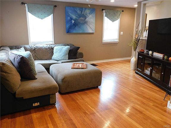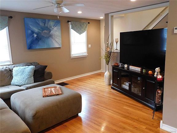 This home is super cute and extremely well maintained! It feels very open and inviting. You will love the mudroom upon entering your home with lots of space for coats and shoes.....Living room and dining room have gorgeous hardwood flooring. The updated kitchen has tile flooring and stainless appliances. Finished family room in the lower level and 2 bedrooms with hardwoods and a bath upstairs. Central air. This home also has a large deck off of the back and a HUGE yard! Come see this home today.