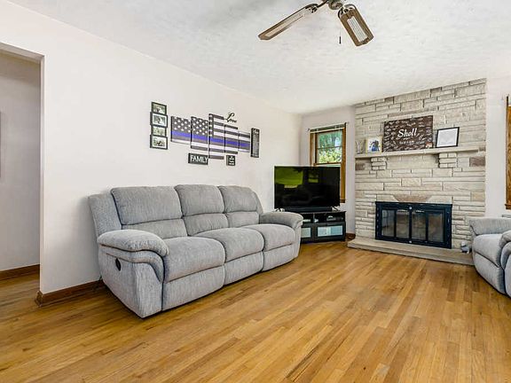 All brick 2BR, 1BA ranch -- updated kitchen and full bathroom -- living room features a floor-to-ceiling stone, log wood-burning fireplace and large, picture window -- full, block basement --- covered, front porch. Highest and best offers should be submitted by 6pm, Sunday, June 7th! SEE AGENT TO AGENT REMARKS!