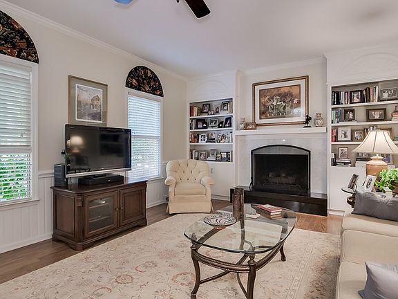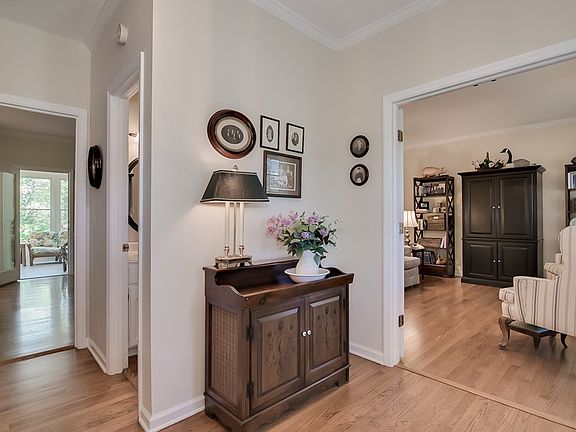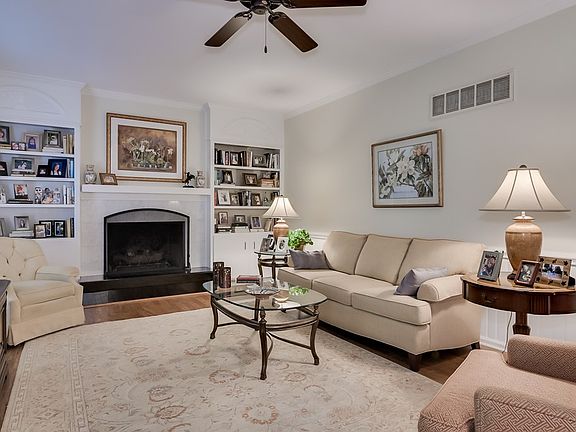 GATED COMMUNITY - Custom 4 bedroom, 2-1/2 bath home, with bonus, is perfect for entertaining. Welcoming foyer opens to the study/den & DR with beautiful hardwoods throughout, & full length windows. DR flows into the updated kitchen with SS appliances, tile backsplash, Corian counters, snack bar & custom cabinetry. Beyond the kitchen is a wet bar & breakfast bay with serene wooded view. LR features cozy hearth, framed by custom cabinetry & french door access to the sun room, deck & wooded back yard. Spacious master suite with walk-in closet & private bath. CLUB MEMBERSHIP OPTIONAL