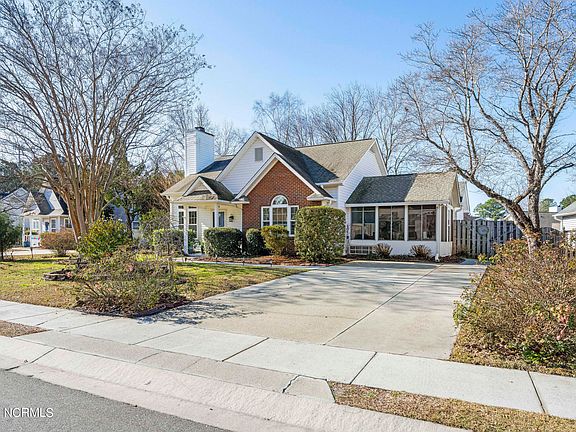 This charming 3BR/2BA homes has loads of character. You will love the open floor plan and high ceilings and Strand Woven Bamboo floors in the kitchen, dining area and living room. The living room has a wood burning fireplace to add to the coziness of this home. There are recycled glass composite countertops in the kitchen, an island and a new microwave was purchased in 2023. Also, the washer & dryer are only 2 months old. The custom sunroom, complete with Easy-Breeze windows, is very light and airy and is currently used as the owner's art studio. The spacious master suite & ensuite offer a relaxing respite at the end of the busy day. There are two more bedrooms and the shower was recently replaced in the second bathroom. The beautifully landscaped and fenced in backyard provide a relaxing oasis complete with a waterfall. Also in the backyard is a hot tub, storage shed that has electricity. Another storage area is attached to the home and contains the air handler plus additional shelving. Meadowbrook is a lovely community and is convenient to downtown Wilmington and Wrightsville Beach. Make an appointment today to see this lovely home.