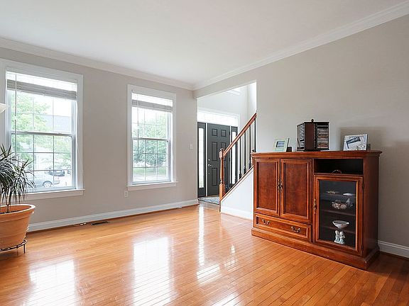 Spacious and move-in ready Colonial features 4 bedrooms and 2.5 baths. Main level is highlighted by hardwood and tile flooring, an open concept family room and kitchen with a center island, granite counters, gas cooking, stainless steel appliances- including a Samsung refrigerator with a LCD touchscreen panel. The sun filled breakfast area leads onto a patio and the fully fenced rear yard. Your inviting master suite features French doors, lush wall to wall carpeting, a walk-in closet and recently updated en suite with dual sinks, a soaking tub and walk-in shower. Completing the top floor are 3 additional bedrooms and an updated hall bathroom. The sprawling unfinished basement offers rough-in plumbing for an additional full bath and presents plenty of possibilities! Additional highlights include the gas fireplace, 2 story foyer, fresh interior paint, some updated light fixture and a brand new HVAC system. Nestled in a great neighborhood with convenient access to parks, highways, shopping and dining, this fantastic property has so much to offer!