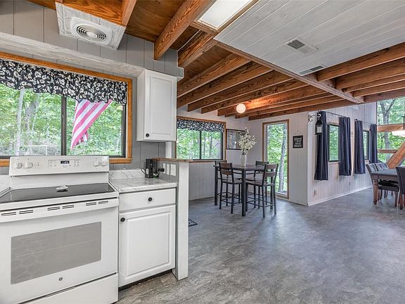 WOW!! Centrally located to all of the Innsbrook resort amenities, this spectacular expanded Santa Barbara style chalet offers plenty of room for entertaining family and friends. Chalet features 3 spacious bedrooms, 2 full baths, expanded great room with room for dining table, living room and game room, updated expanded kitchen, expansive deck offering views of lake Innisfree and Lake Muetze, private lakeside dock, firepit and lots more. Chalet offered fully furnished, ready to enjoy the upcoming summer season at the Innsbrook resort. Short walk to the beach on 150 acre lake Aspen, perfect spot to enjoy the annual fireworks show. Concrete driveway, On sewer with W/D, in the rentable section of Innsbrook. (rental history available upon request) New HVAC in 2022, decks recently stained Suitable for Bed/Brk