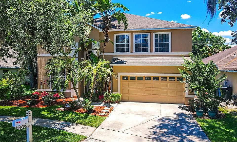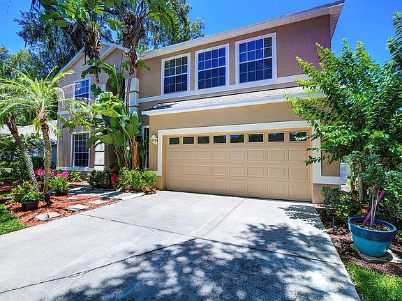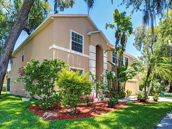 Curb appeal abounds as you arrive at this freshly landscaped and sodded home. This home is located in the desirable and secluded gated community of Lake June Estates. Enter the custom glass front door to the wood floors in the dining and living room areas to the over-sized kitchen with eating area. The kitchen features stainless steel appliances and a large breakfast bar and plenty of cabinet space. Sliding doors from the living room open to an impressive screened in porch that runs the width of the home. The ground floor Master Suite features a large walk-in closet, dual sinks, shower and separate Jacuzzi tub. . The Grand Staircase leads to 4 bedrooms, 2 bathrooms and a large game room on the second floor. This Hampton Manor Mercedes built home has had one owner and is located in a small gated community of 32 homes with a spring fed pond. This home has a combination of upgraded R50 insulation, gas range, dryer, WH and lower level heat creating lower power costs. The down stairs heat pump was installed in 2015 and has a 10 year transferable warranty. No flood insurance required, no CDDs and a unique location with easy access to shopping, beaches, dining, downtown Tampa, Tampa Airport, Selmon Expressway, I-75, I-4 and more! One or more photo (s) has been virtually staged.