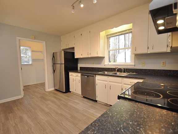 ABOUT THIS HOME This darling ranch style home is nestled in a quiet Garner neighborhood and is available for immediate residency. Located in a shady, established neighborhood with large lots but still just minutes from local parks, schools, HWY 70, downtown Raleigh, I-40 and much more. This home's welcoming interior showcases an updated kitchen with sleek, stainless steel appliances, luxury plank floors, loads of cabinet space and a perfectly-proportioned eat-in breakfast area. The adjacent laundry room has ample shelving space as well as a full length hanging rod. Around the corner from the kitchen you'll find a lovely dining room with hardwood floors and a bay window overlooking the picturesque front yard. The heart of this home has to be its sunken family room featuring dramatic vaulted ceilings, a cozy fireplace, direct deck access, brand new carpet, and a design that's provides for optimal furniture placement. Down the hall is the owner's suite including a walk-in closet as well as an updated, en-suite bathroom. Bedroms #2 and #3 are both spacious, filled with natural light and each enjoys easy access to the full hall bathroom. To round out your tour, be sure to check out the stellar outdoor living space! In the fenced-in backyard you'll find a very large storage shed as well as a double-tiered deck including built-in seating as well as a covered area that truly allows you to enjoy the outdoors, even on not-so-perfect weather days! PROPERTY FEATURES Availability: Available for immediate occupancy Condition: Neat as a pin, freshly cleaned and ready for you! Lease Term: 12, 18 and 24 month lease terms are all available Pets: Sorry, no pets allowed One Level Living: Enjoy the convenience and ease of living that can only be found in a ranch style home! Outdoor Living: Stupendous outdoor living space including a partially covered double-tiered deck with integrated seating Stellar Storage Space: Amazing extra storage space to be found in the spacious storage shed with loft shelving Updated Kitchen: Kitchen boasts sleek stainless appliances, updated counters, luxury plank floors and a breakfast area