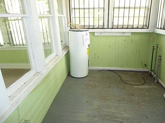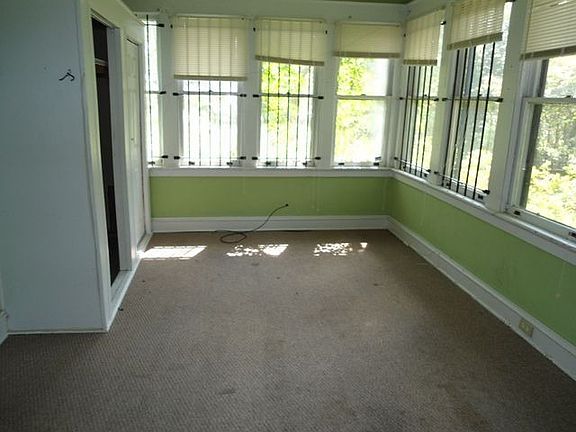 Exterior Features:White of color siding, Roofing shingle type, no gutters, windows wood frame intact. wood front porch, glass back deck, sun room, no AC. Founded. Yard Maintenance.Interior Features:Living Room, carpet flooring in fair condition, Den with fireplace in fair condition, Kitchen, all Appliances, Tile flooring, (1) & (2) & (3) Bedrooms, carpet flooring in fair condition.