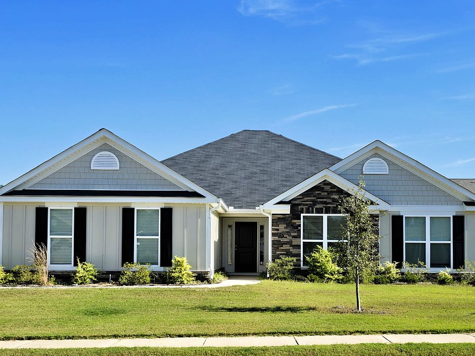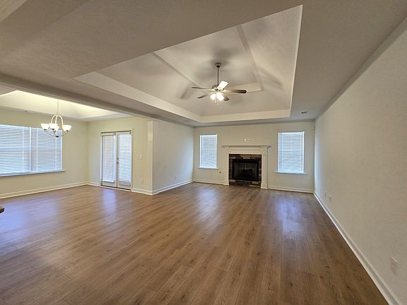 Available for immediate occupancy! Corner lot 4 bedroom, 2.5 bath ranch with side garage entrance and tankless water heater, located in Summerton Village! Covered front entrance leads to wide foyer with chair rail and sidelight windows flanking front door. Waterproof Evacore click flooring throughout living space including foyer, living room, dining room and kitchen. Foyer opens to open concept living area, with the kitchen overlooking the living and dining space, perfect for entertaining. Living room has trey ceiling, ceiling fan and gas fireplace. Adjacent dining area has trey ceiling, decorative lighting, french door to backyard. Well equipped kitchen has island that runs the length of the ktichen with long breakfast bar that can accommodate at least 4 barstools. Kitchen also has granite counters, stainless appliances, subway-tile backsplash, french door fridge, farmhouse apron sink and double door pantry. Hallway off kitchen leads to laundry room, garage, mud room, half bath and power pantry. Power pantry is a large pantry with shelving that also includes a water line for additional fridge or ice maker. Mud room off garage has coat pegs and shoe bench, also security system panel that can be activated by the tenant. Conveniently located half bath with stone counter. Garage has sprinkler system control for both front and back yard, extra shelving for storage. Laundry room with washer/dryer hookups, cupboard and hanging shelf. Primary bedroom with trey ceiling, fan, enormous walk-in closet with shoe rack and en suite bath with dual sink vanity, large soaker tub and separate walk in shower. Spacious 2nd, 3rd and 4th bedrooms with double door closets and double racks for additional storage capacity. Backyard has covered, screened patio with ceiling fan/light. Completely fenced backyard with storage shed for additional storage!