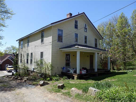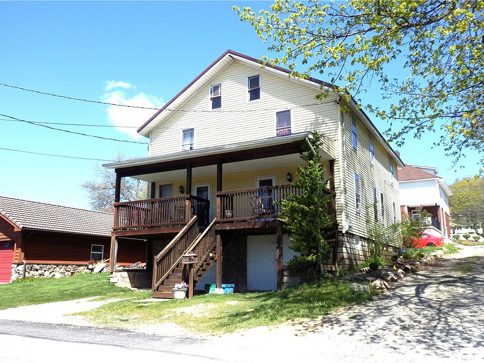 So many options with this house. Large 6 bedroom home that was once a duplex and could be coverted back into a two family without too much work. Many updates. New electric just added to the entire house. New light fixtures, and outlets. Furnace in 2008, New metal roof in 2021 with new sheating. gas hot water tnak with new plumbing, storm windows, Furnace serviced, New gas lines to the house, Chimney's cleaned with new liner 20 year liners, Newer plumbing. Two covered porches front and back. This could be a excellent rental property. Full attic for storage. Hardwood floors under carpet.