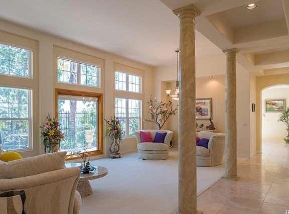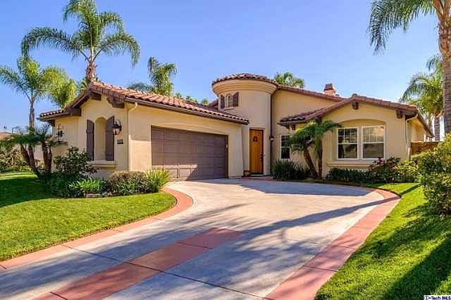With no other sounds around it other than the wind whispering through the palm trees this immaculate home will captivate you with spectacular city and mountain views from almost every room. Arise to panoramic vistas from your master bedroom with sliding glass doors leading into a well-manicured backyard complete with an outdoor spa. The open and airy floor plan offers over 2,100 square feet including a sizable guest bedroom, a third bedroom functioning as an office with custom built-in cabinetry, plus a spacious living room/dining room combination with high ceilings and a picture perfect view window. The gourmet style kitchen features granite counter tops and backsplash, center island with eating area which opens to the family room with fireplace and built-in media alcove. This single level home, a rare and highly sought after find in La Vina, will be sure to delight even those with the most discriminating tastes.