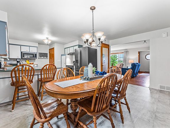 A Home Showcased With "CARE"!! Whether you are starting out or sizing down, this spotless, easy-care brick ranch is for you! Discover the solidity and substance of 1960 construction, protected by a newer roof and replacement windows. Step inside where natural light pours in through the picture window, highlighting the living room’s stunning stone fireplace that rises from floor to ceiling. Whether it’s the glow of sunlight or the flicker of a fire, this space is always inviting. Gleaming original hardwood floors create a seamless flow from the living room into the hall and bedrooms. Original cabinetry, refreshed with a coat of paint, pairs perfectly with durable solid surface counters to create an eclectic mid-century vibe in the kitchen and dining area. A sun-soaked breezeway connects to the stamped concrete patio for summertime get-togethers and a finished basement further expands your living space.
