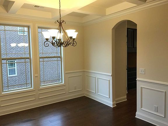 Welcome home to the award winning Fortress of Eastchester! Our flagship home features 5 bedrooms and 3 bathrooms in 3,200 Square Feet. The two story foyer welcomes your guests into your home and showcases the oak hardwood stairs and hardwood flooring. A formal living room and dining room with coffered ceiling are off the foyer as well. Hardwood floors come in the foyer, formal dining room and living room as well as a gas-log fireplace with hand-crafted mantle and granite surround. The kitchen features and over-sized bar with heavy 3CM granite that overlooks the living room; perfect for entertaining guests or keeping an eye on the kids while preparing dinner. The kitchen also has tall cabinets with crown molding and soft-close cabinet doors. The hardwood stairs lead to and enormous loft that overlooks the two story foyer. The master bedroom boasts an angled tray ceiling and in the master bath you have a dual vanity sink with 3 cm granite, framed mirror, walk in closet, water closet and separate tub and shower. The covered back porch overlooks the private wooded back yard.