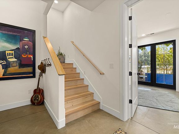 Sophisticated townhome living in Boise's coveted East End. Located a few short blocks from downtown & steps from Military Reserve cycling & trails, this 3 bedroom/3.5 bath stunner provides ease of living w/ luxury comfort and style. Featuring a gourmet kitchen, equipped w/ a 6-burner gas Thermador range & gorgeous granite counter tops, that opens to expansive dining and living room areas accented with wood beams, oak floors, & a gas fireplace. A private deck waits just beyond the stunning black french doors. Upstairs unwind in either of 2 bedrooms complete w/ ensuites and private balconies, each w/ easy access to the convenient utility area. On the first floor, owners enjoy the flexibility of a 3rd bedroom that can easily function as a private rental studio, complete w/ a separate patio entrance and European utility hookup. The garage features epoxy floors and a hot/cold hose bib. Superior construction, insulation party walls, wiring for interior elevator, multi-zone heating & cooling, and so much m