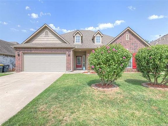 3b/2b with a designated office w/ closet, as well as bonus area upstairs for gameroom/exercise, etc. Kitchen has updated backsplash & new dishwasher, eat in area and bar seating. Enclosed sunroom leading to back covered patio and fully fenced yard. Large living area open to kitchen/dining with FP. All beds down w/ split floorplan. Owner's suite bathroom w/ sep tub & shower & dual sinks. New impact resistant roof 2020. Walk through neighborhood to Jenks West schools! Close to shopping, dining & hwy access!