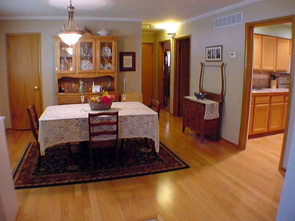 Stylish Updates in this Wonderful Move in ready home. Large LR w/fireplace, Dining rm w/multiple closets, Kitchen w/ Oak cabinets, ceramic counter top, Microwave and more. Laundry rm off the kitchen with cabinets and folding counter. A Dream Mst Bdrm & Bath, w/ french doors, 3 closets, whirlpool tub, shower, double sink vanity. Partial basement. Dual (Zoned ) furnace and air. Patio Corner shady lot Don't wait - call us to schedule a viewing to see your next home.