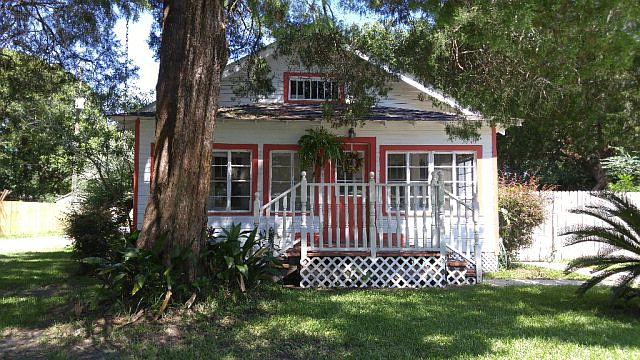 CUTEST HOUSE ON THE BLOCK! This Cottage-style Bungalow features beautiful hardwood floors throughout living areas (tile in Kitchen & bath), neat build-in's & architectural details. 2 bedrooms but there is another bonus room that could be a 3rd bedroom, office, baby's room or even small den. Laundry room is in air-conditioned (window unit) enclosed back porch and there's another enclosed porch on the front of the home. Bedrooms are a nice size, bathroom has cute pedestal sink. Kitchen is cute and new refrigerator stays! Smooth cooktop stove, new microwave, dishwasher, and double sink any cook would love. The shady back yard make relaxing easy and there a garden area in the side yard (all which is fenced & gated). Matching storage shed to remain. This one won't last long!