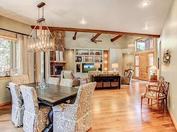 It's time to move forward into your dream home. Forest living in the cool pines of the popular Chaparral Pines Country Club. This well-conceived, single level and highly upgraded 3-bedroom 3-bath home at just over 2,500 sq. ft. is a dream come true. This highly sought-after single level home in Chaparral Pines sits along the golf course within the privacy of the pines, and provides peaceful seclusion. The homes tremendous outdoor living space includes a bridge, .and meandering paths on 1/2 acre. For those of you who love to entertain, the composite Trex deck provides carefree living, and views, all on the first fairway! Vaulted ceilings and an open floor plan add flair and make for a spacious main living area in this gorgeous mountain retreat. The kitchen is always